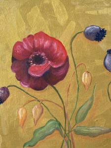 Mohn, Gold Acryl, Öl, 50 x50 cm MixMediART